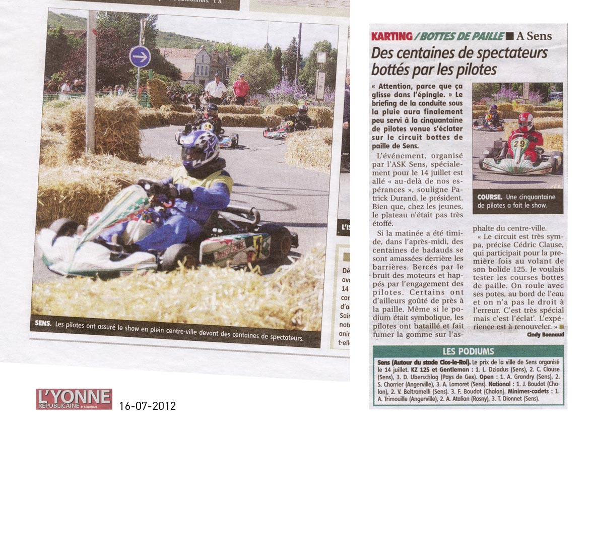Grand Prix de la villle de Sens du 13 juillet article dans l'Yonne Républicaine